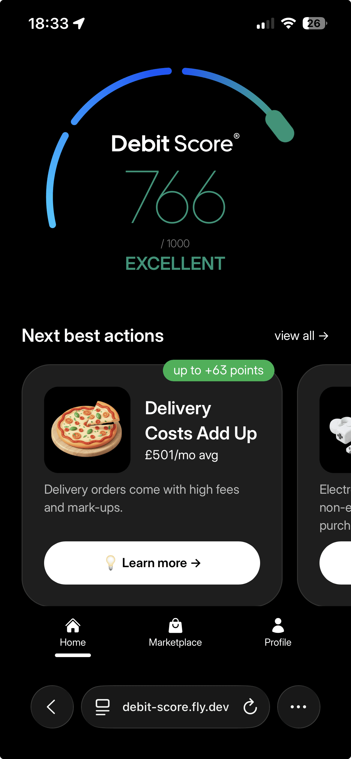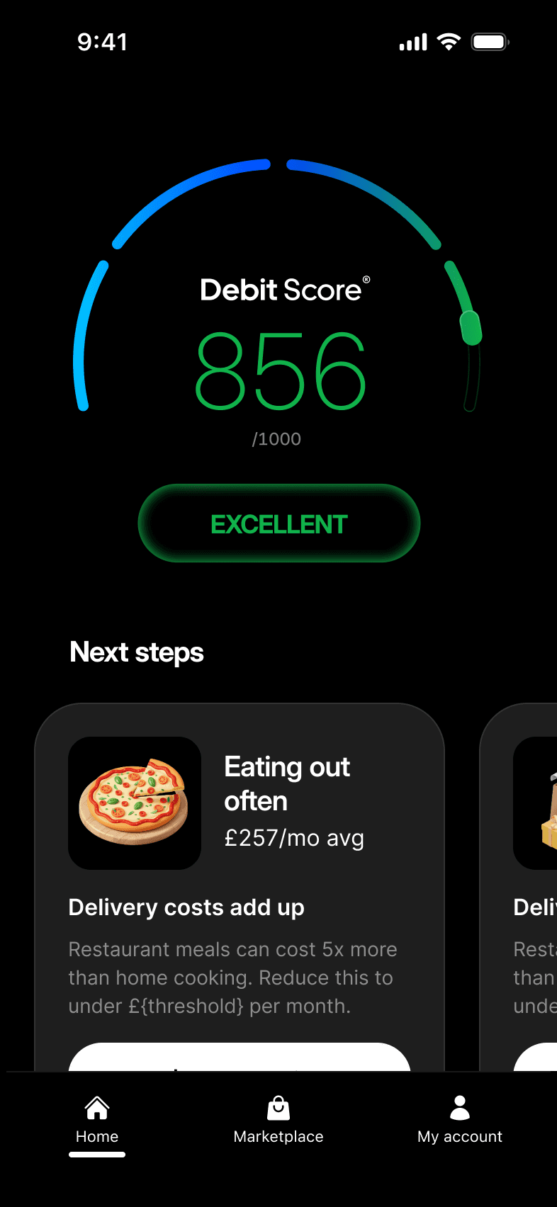 Debit Score helps me understand, manage and improve my day-to-day finances with updates that reflect my income, spending and balances